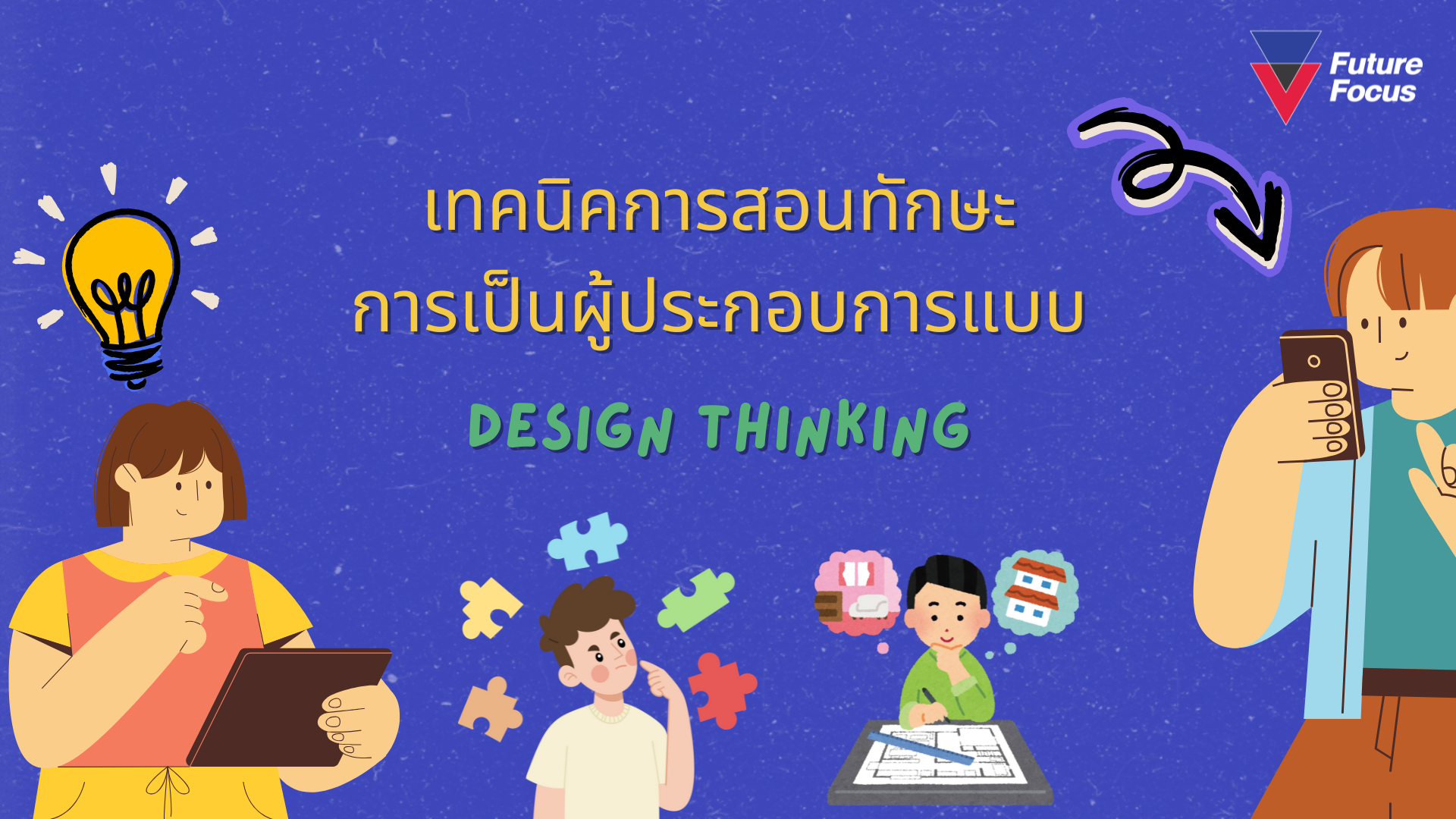 หลายครั้งที่เรามักเห็นผู้เรียนเริ่มต้นออกแบบสินค้าเลยแล้วค่อยคิดว่าจะขายให้กับใคร… ซึ่งทำให้สินค้าและบริการสุดท้ายขายไม่ได้ เพราะไม่ได้มอบคุณค่าที่แท้จริงให้ผู้ซื้อ จุดเริ่มสำคัญที่ผู้สอนควรเน้นย้ำคือการตั้งคำถาม… ผู้เรียนต้องการจะแก้ปัญหาอะไร? ให้ใคร? การนำ “กระบวนการคิดเชิงออกแบบ (Design Thinking)” โดยเริ่มจากการทำความเข้าใจความต้องการที่แท้จริงของผู้บริโภคมาประยุกต์ใช้ จะช่วยให้ผู้เรียนจะได้มีโอกาสใช้ความคิดสร้างสรรค์ หาแนวทางใหม่ๆ ในการแก้ปัญหา และท้ายที่สุด ค้นพบคำตอบเป็นสินค้าและบริการที่โดนใจผู้บริโภคได้มากกว่านะคะ