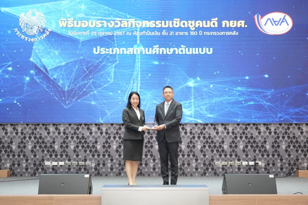 ในการนี้ ดร. อิสริยา วรพิพัฒน์ ผู้อำนวยการ วิทยาลัยเทคโนโลยีสยามบริหารธุรกิจ (SBAC) เป็นผู้แทนวิทยาลัยเทคโนโลยีสยามบริหารธุรกิจ (SBAC) เข้ารับรางวัลโล่ประกาศเกียรติคุณ ประเภทสถานศึกษาต้นแบบ โดยมี นายลวรณ แสงสนิท ปลัดกระทรวงการคลัง ประธานกรรมการกองทุนเงินให้กู้ยืมเพื่อการศึกษากล่าวแสดงความยินดี และมอบรางวัล ณ อาคาร 150 ปี กระทรวงการคลัง กรุงเทพมหานคร